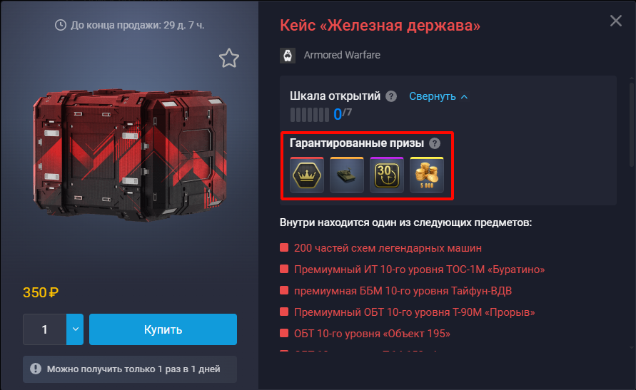 После открытия 7 кейсов вы обязательно получаете один из гарантированных предметов: