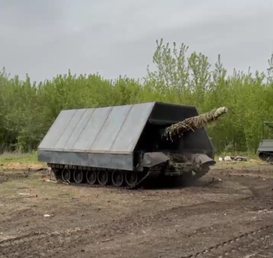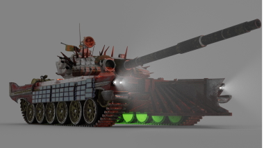 Краткое описание. Глубоко модифицированный российский танк с массивной надстройкой из разнесенной брони.