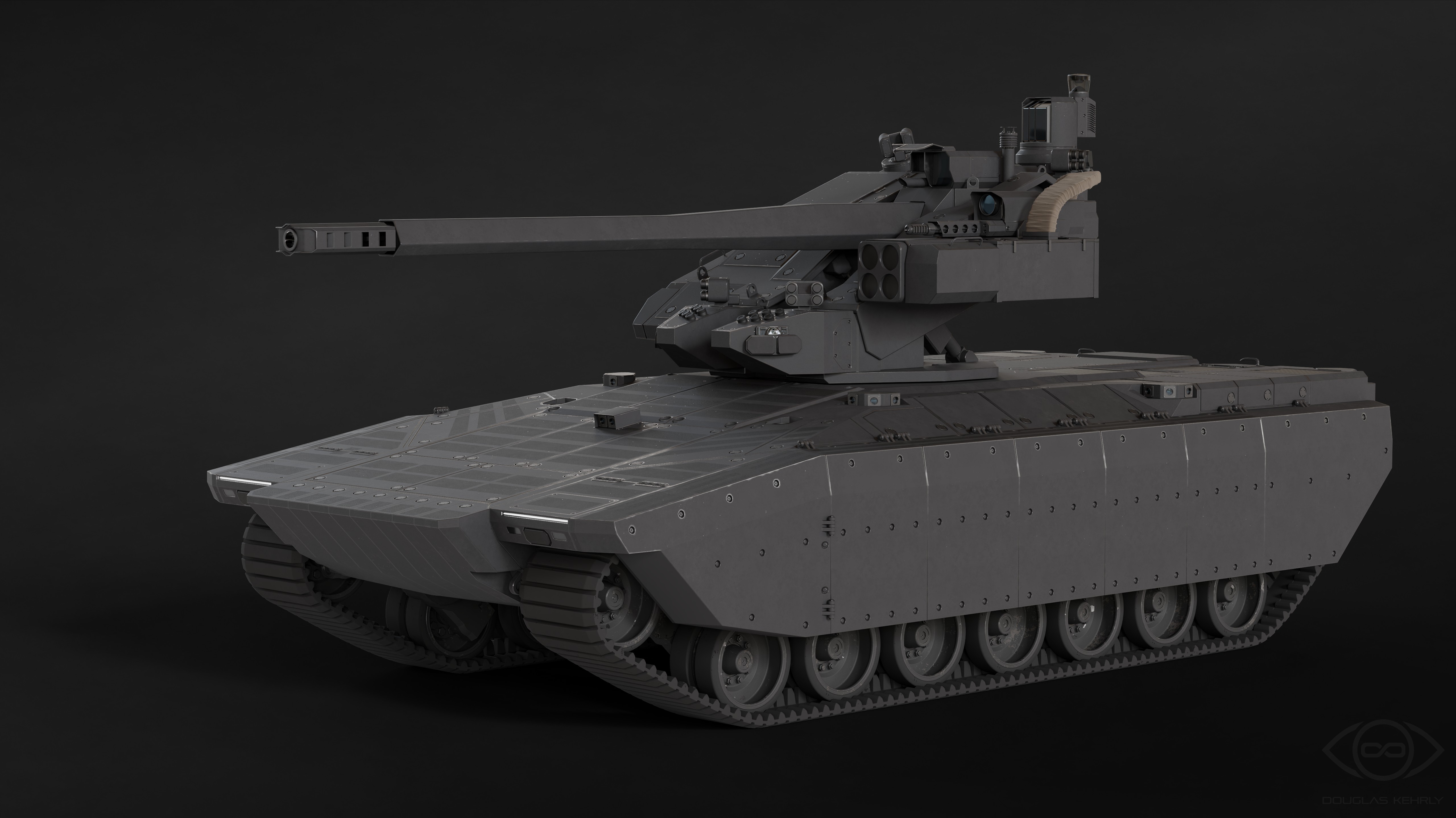 Краткое описание. Вымышленная ББМ с колоссальной огневой мощью. По концепции напоминает CV90, оснащена подъемной башней. Подробнее мы рассказали о ней в специальной статье. По качеству проработки это лучшая заявка, заслуживающая отдельного приза.