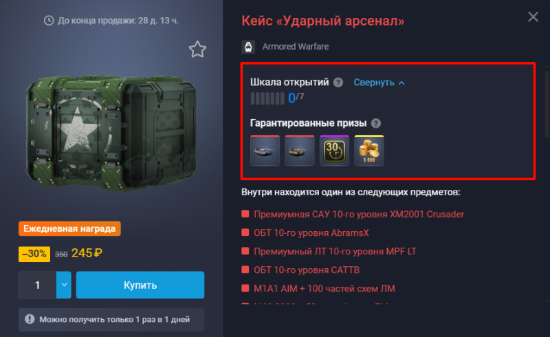Обратите внимание: каждый день можно купить только один кейс.