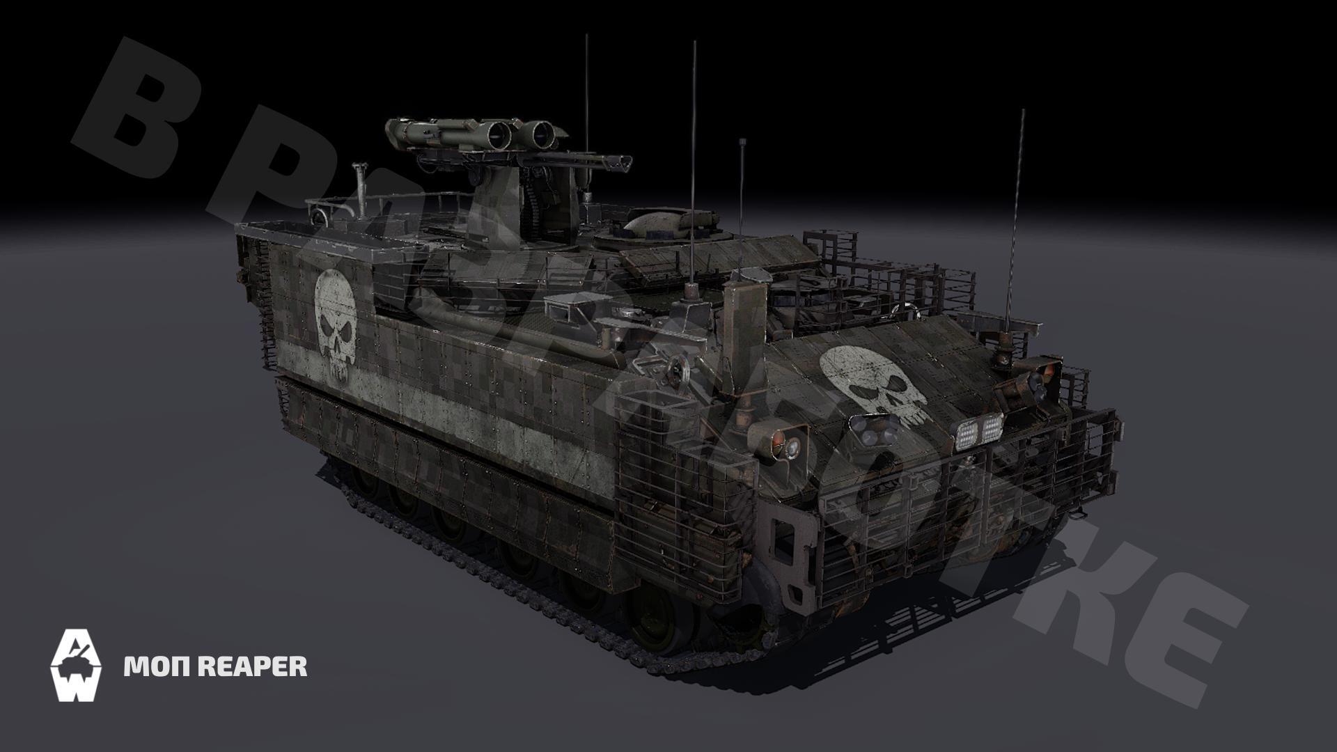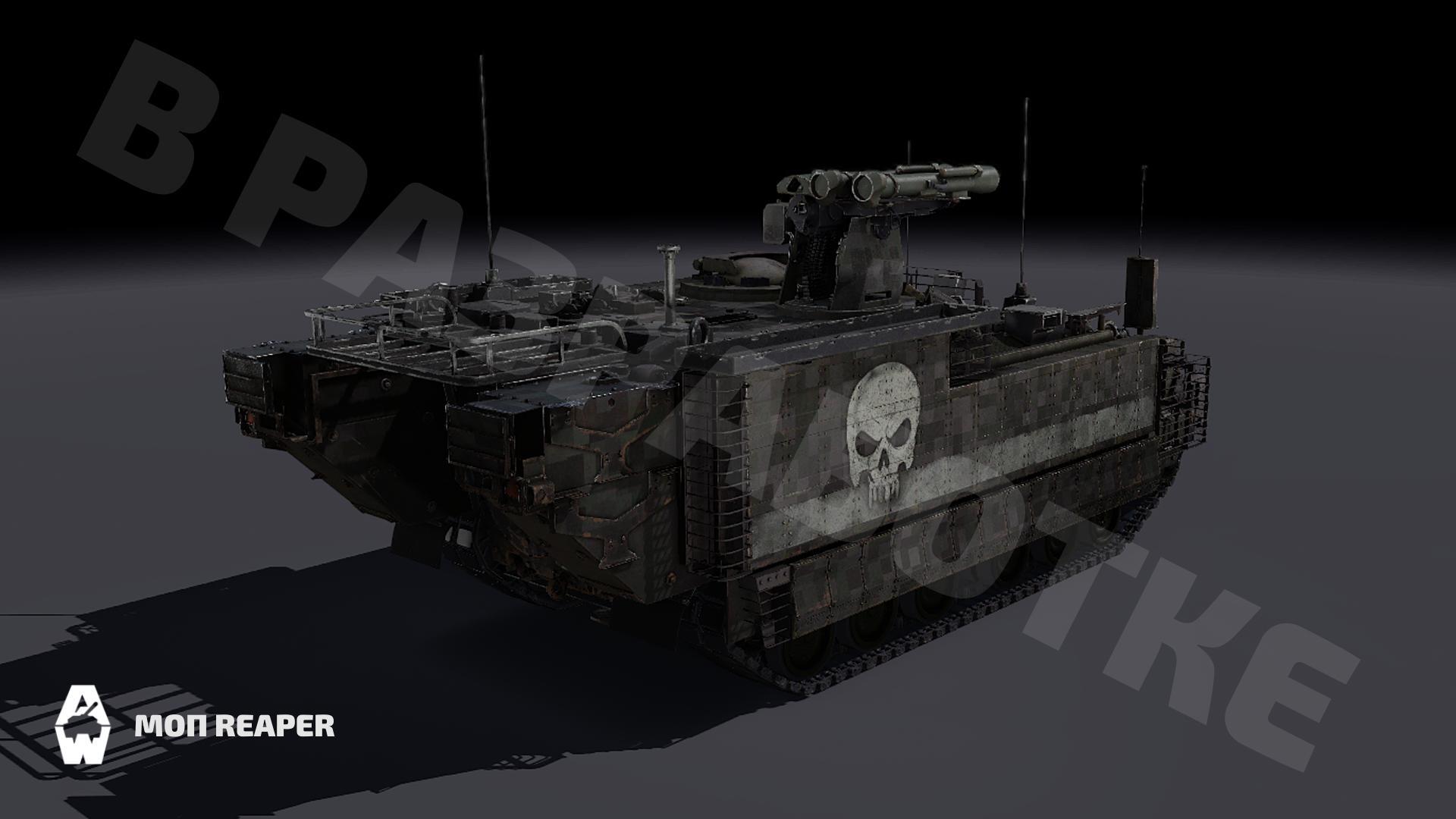 Во вселенной Armored Warfare Reaper — глубоко модифицированный AMPV. Полные чертежи этой машины были обнаружены среди данных, которые Эмили Аракава получила во время операции «Рассвет». Но тогда посчитали, что эта машина разрабатывалась только на бумаге и не была завершена. Лишь спустя два года во время рейда на объект корпорации Clayburn Industries, скрытый в руинах Беэр-Шевы, был захвачен прототип вместе с крупным запасом сарпанита.